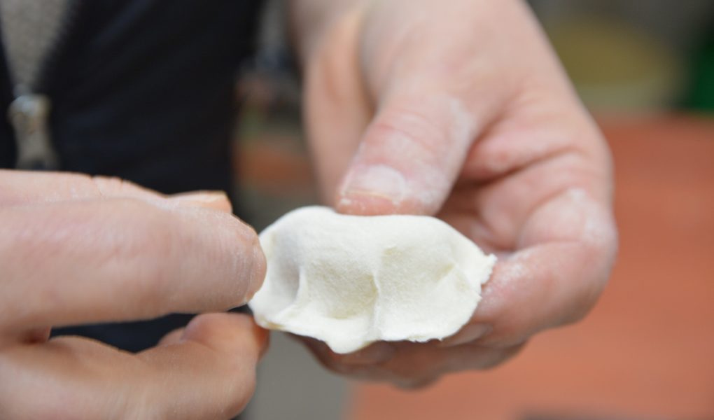 – Przed wojną znaczną część ludności Bobowej stanowili Żydzi – wyjaśnia Marcin Szczepanek. „Dlatego przygotowaliśmy pierogi na bazie tradycyjnej żydowskiej receptury. Mają oryginalny, trójkątny kształt a zawarta w farszu wołowina balansuje „żelazowy” smak wątróbki. Dla słodkości do farszu dodana jest żurawina i pieczone jabłko z cynamonem, czyli bardzo popularne dodatki do mięs wśród wschodnio-europejskich Żydów” – mówi Marcin Szczepanek.